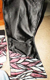 This is the matching knitting needle roll. i originally wanted to do the exterior of the roll in this fabric, but i didn't have enough, so instead I used it for the pocket & the accents on the outside. "Mindy, that black fabric seems like satin." thats because it is. it is satin AKA the devils fabric. seriously. satin is evil. EVIL. i measured this thing exactly, and somehow the satin doubled in size. i dont know the size/length of knitting needles, so hopefully its not to gigantic.