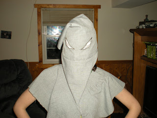 The only problem is the eyes. I bought a sheer fabric thinking it would be fairly easy to see out of.. and BOY WAS I WRONG. before I put the eyes on, the grey was fairly easy to see out of.. kind of blurry.. i mean, you couldn't watch TV with it.. and I can't wear my glasses w/ the costume, but easy enough.. but when i put the eyes on.. i realized that you cant see ANYTHING out of it. :/ so now i'm on a mission to find a more sheer fabric.. although i have no idea what i'm going to use.