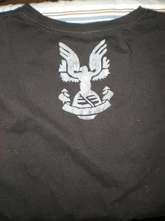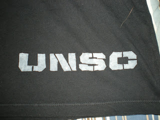 SO i decided to stencil my other shirt. the picture makes the UNSC look REALLY white, but it's actually pretty greyish. I wanted to give it a beat up kind of look. i'm hoping it cracks a little once i wash it. i love vintage-y looking teeshirts.