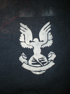 I didn't use any special paints or anything.. my mom paints woodcrafts all the time, so I just borrowed her white and black.. mixed them up to get a dull grey.. and painted. I didn't use just grey, because I like the differing colors you get when you dont fully mix colors. plus, I ended up going back over the UNSC logo with a little black. xD Some tutorials suggest you use some kind of textile something? but in my experience, I've never had a problem with just acrylic. I literally cannot wait to stencil something else!!! my only question now.. is WHAT am I going to stencil!? I have a bunch of stencils, but no idea what to put them on. xD
